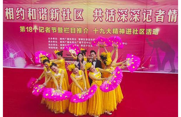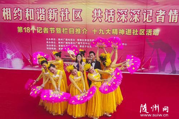 随州网讯 “相约和谐新社区,共话深深记者情”。11月7日下午,随州广播电视台广播节目中心的记者们走进曾都区西城草店子社区,和社区网格员共同举办庆祝记者节文艺联欢会,向全市记者送上节日的祝福。(本报记者 李文军 摄)
