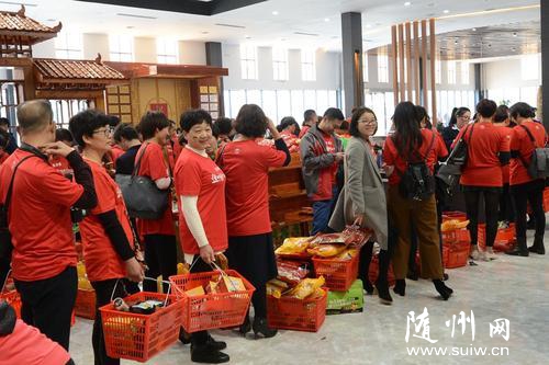 湖北裕国菇业股份有限公司把香菇种植基地、加工车间建成“景点”,开展工业旅游,推进一二三产业融合发展。自11月开始,每天接待全国各地游客数百人,扩大了随州道地香菇的知名度和美誉度,促进了产品直接销售,拉动了当地相关产业发展.图为游客抢购“裕国好菇粮”系列快消品。 (本报记者 李文军摄)