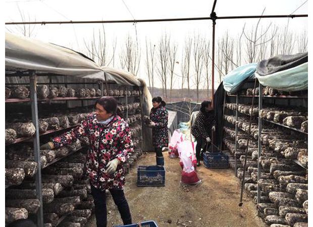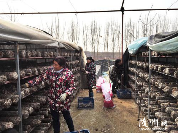 随州网讯 随州市随县殷店镇塔儿山村利用扶贫资金发展香菇产业,现已种植香菇30多万袋,带动30多户贫困户增收。图为11月18日,贫困户正在采摘香菇。 (本报记者 冯家园 通讯员 冯琦摄)
