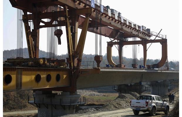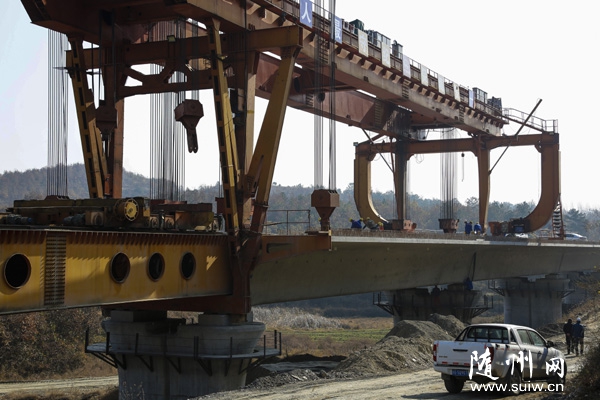 随州网讯 汉十高铁随州段架梁工作目前已经进入最后冲刺阶段。建设者们表示,将合理安排工期,以最优的质量完成汉十高铁随州段架梁任务。图为中铁大桥局五公司府河施工现场。(本报记者 孙洪涛 通讯员 孙晓峰摄)