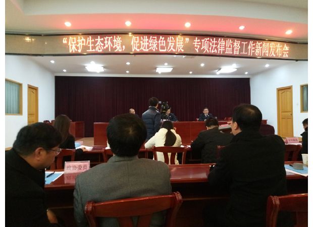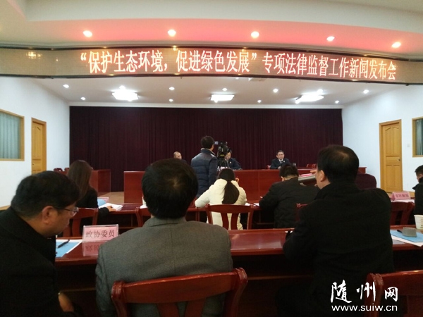 随州市“保护生态环境,促进绿色发展”专项法律监督工作新闻发布会在市检察院举行,市人大、政协、人民监督员、各市所有新闻媒体、环保志愿者及相关职能部门共50余人参加。会上公布全市八起破坏环境案的监督督办成果。这是我市检察院履职尽责,依法办事,促进社会和谐,经济健康发展的重大举措,是专项法律监督工作重大成效,是好事,是民生之事,是人民之福。