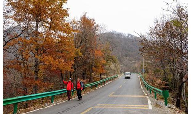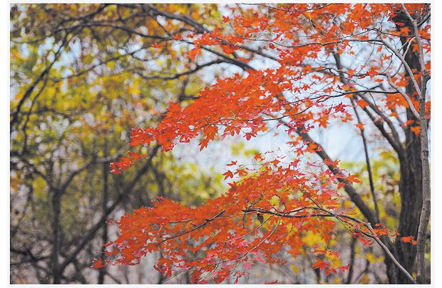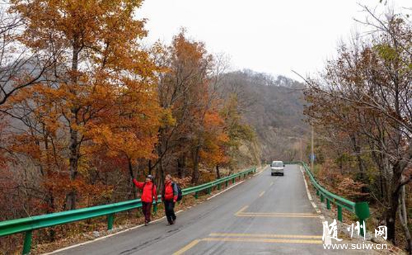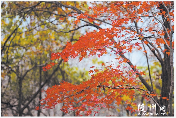 随州网讯 初冬,大洪山枫叶红似火,赏叶游客络绎不绝,陶醉其中。(本报记者 李文军摄)