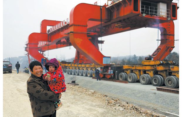 随州网讯 12月7日,随州市曾都区洛阳镇易家湾村民在汉十高铁随州段建设现场参观。村民们说,高铁的建设和发展一定会给老百姓带来福利和实惠。(本报记者 孙洪涛摄)