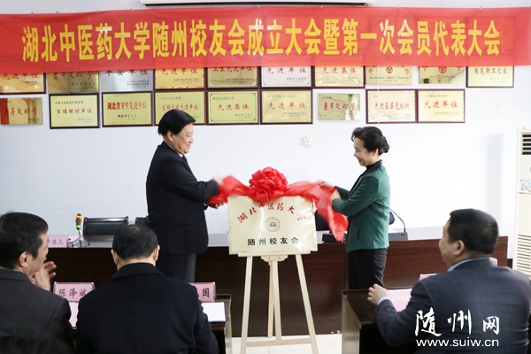 随后,副市长郑晓峰与湖北中医药大学党委书记王祚桥共同为湖北中医药大学随州校友会揭牌。