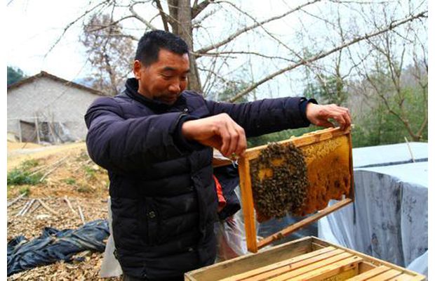 随州网讯 大洪山风景名胜区长岗镇强化干部包保帮扶,帮助扶贫对象找对扶贫产业,精准脱贫。该镇熊氏祠村精准扶贫对象邵本全,在扶贫包保干部的帮助下,开展黑猪、花猪、蜜蜂养殖,今年仅蜂蜜一项就给邵家带来1万多元收入。(本报记者 王璟天摄)