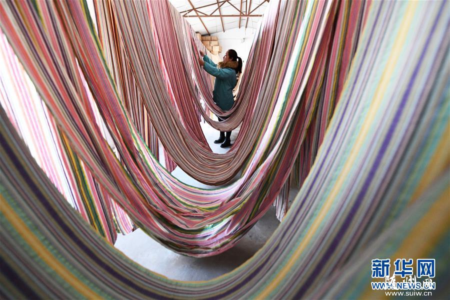 1226日,在河北石家庄赞皇县一土布生产车间,工人在整理布匹。近年来,河北赞皇县采取“互联网+合作社+基地+农户”形式,将省级非遗项目赞皇原村土布纺织技艺与现代消费理念结合,打造纯手工土布生活用品,让2500余名农民实现家门口就业。新华社发(陈其保 摄)
