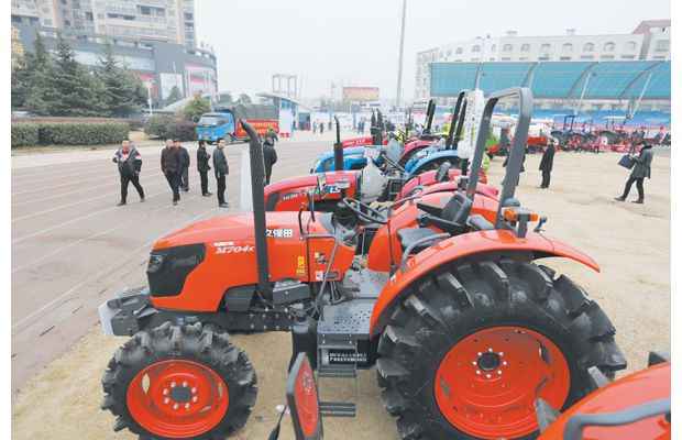 在场地的另一侧,数辆农用拖拉机一字排开,还有一台喷洒农药用的无人机在空中“盘旋”,引得不少群众围观。现场工作人员介绍,通过科技产品的展示,让大家树立农业现代化的理念,运用科学技术种田。