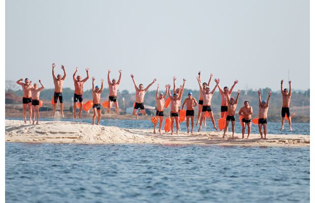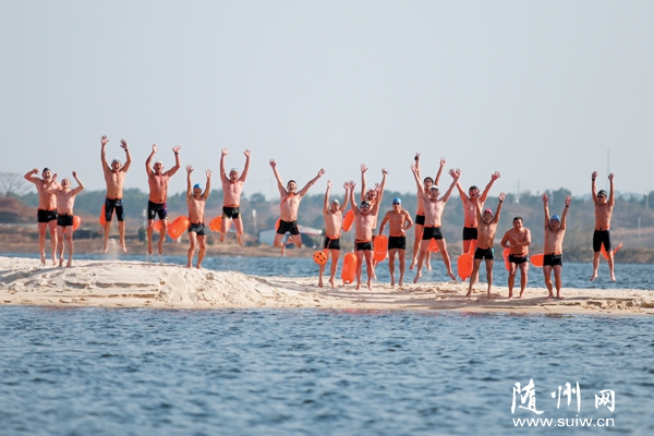 随州网讯 元旦前夕,随州市新成立的冬泳协会集结20余名“泳士”,横渡马鞍山水库,用这种特殊的方式迎接新年。 (本报记者 李文军 摄)
