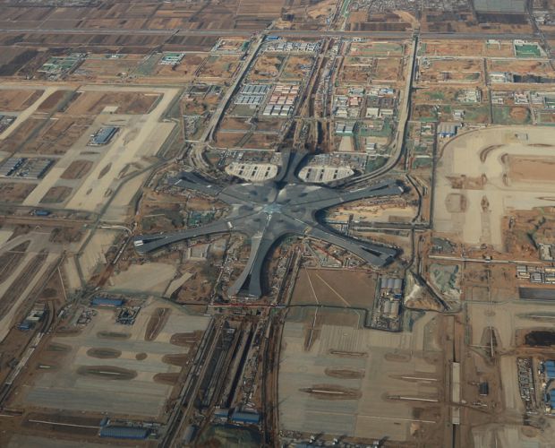 2018年1月6日,北京,北京大兴国际机场初露妆容。大兴国际机场,是继北京首都国际机场、北京南苑机场(将搬迁)后的第三个客运机场,正在建设的四条跑道及一条军民两用跑道,计划于2019年年底建成,在客流达到4500万人次时,建设第一卫星厅,使航站楼面积达到82万平方米,客机位近137个,使其满足7200万人次吞吐量。