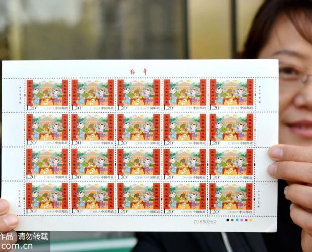 中国邮政2018年1月10日发行《拜年》特种邮票1套1枚,全套邮票面值为1.20元。该套邮票由清华大学美术学院教授吴冠英设计,书法家欧阳中石题写邮票名称,对联作者常江,北京邮票厂影写版印制。该套邮票是《拜年》系列的第四套。邮票上“欢欢”“喜喜” 在壮族聚居区向全国各族人民拜年。