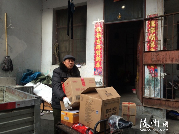随州网讯( 梁红玲 段春善)1月12日早晨8点多,随州市西城办事处九曲弯社区居民彭玉华老人正在自家门前把前一日已购买好的20多斤黑猪肉、4桶食用油、4袋大米和红酒白酒等价值5000余元的生活用品,一一细心地码放到自己小小的三轮车中,然后蹬着满载着物资的三轮车,朝着曾都区第一社会福利院前进。