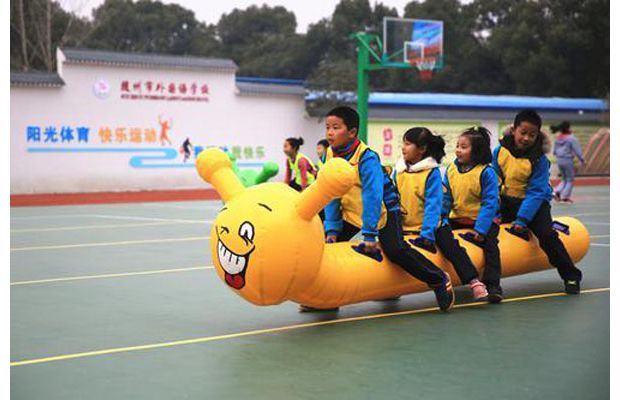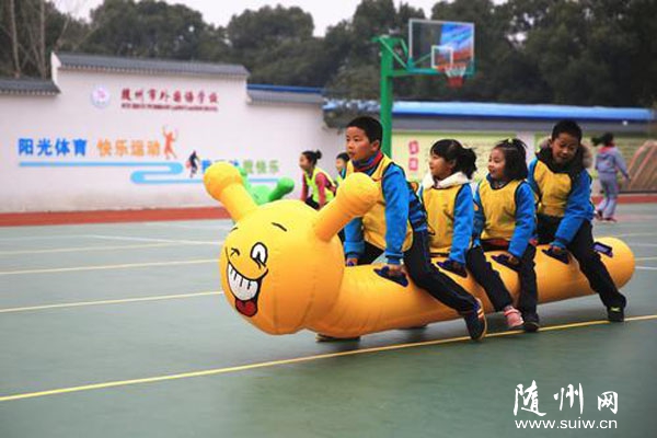 随州网讯 随州市外国语学校注重引导学生“快乐学习,幸福成长”,开展丰富多彩的兴趣活动。图为该校高新校区的孩子们日前开展的“毛毛虫”趣味运动赛。(通讯员 叶冠睿摄)