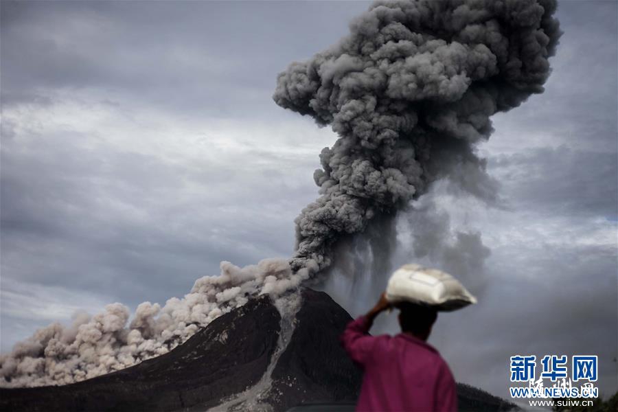 这是2017年122日在印度尼西亚北苏门答腊省卡罗拍摄的锡纳朋火山喷发的场景。锡纳朋火山位于印尼北苏门答腊省的卡罗县,在沉寂近400年后于2010年首度喷发。20156月以来,该火山一直处于最高警戒级别状态。新华社发(安德里·金廷摄)