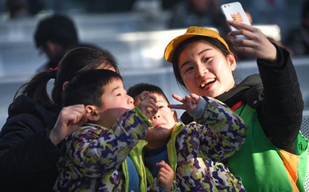 2018年2月5日,在南昌站看到回家的人们无论候车还是准备上车,无论背着沉重的行李还是孩童在玩游戏,无论家有多远也要回家。阳光路上让爱回家。鲍赣生/摄