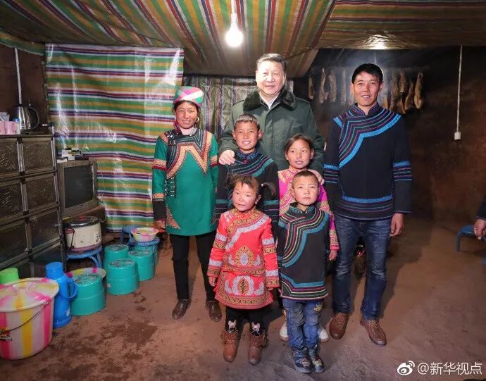 在昭觉县三岔河乡三河村,总书记走进贫困户吉好也求的家,仔细察看一家人生产生活情况。得知10岁的吉好有果喜欢唱歌,总书记问她:“要不要唱一首啊?”小姑娘爽快地回答:“要!”话音刚落就唱起在学校学的《国旗国旗真美丽》。纯真的歌声打动了在场的人们。总书记带头鼓掌,称赞她唱得好,发音很准。习近平对吉好也求一家人说,看着你们生活一天一天好起来,我很高兴。希望孩子们都能过上幸福生活。
