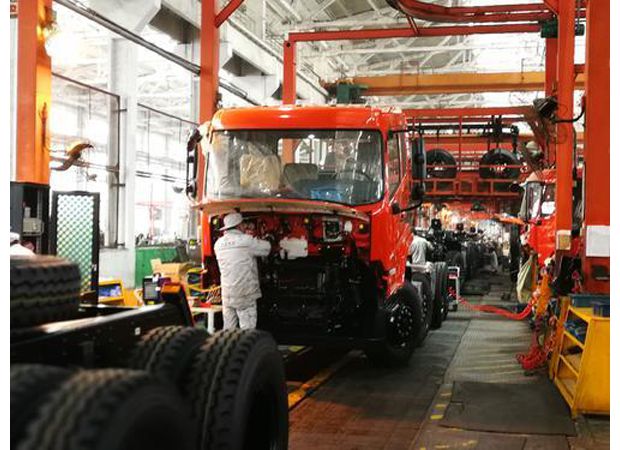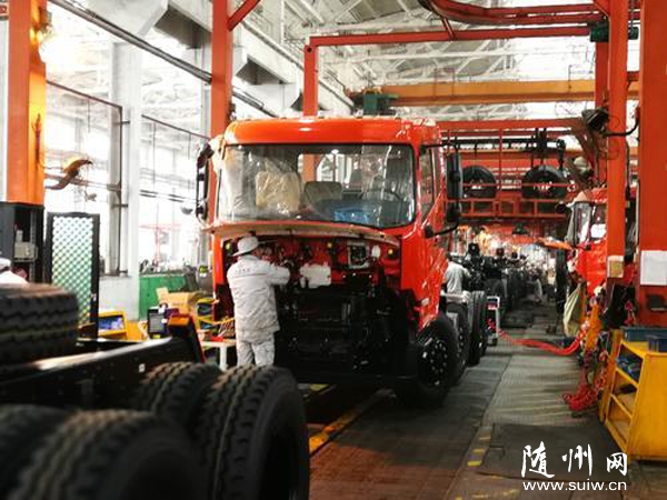 开年来,东风随州专汽公司底盘订单饱满,生产红火,全年可生产1万多台。图为底盘生产线。(本报记者 冯家园摄)