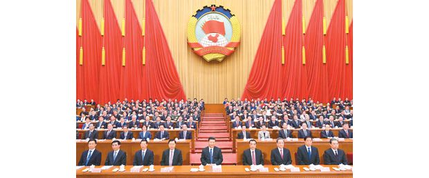 3月3日,中国人民政治协商会议第十三届全国委员会第一次会议在北京人民大会堂开幕。这是习近平、李克强、张德江、俞正声、张高丽、栗战书、王沪宁、赵乐际、韩正在主席台就座。 |
