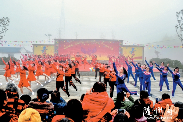 随州网讯 3月8日,随县新街镇15支农民女子广场舞蹈队在新街文化广场开展比赛,她们尽情舞蹈,尽情欢呼,释放自己的热情,庆祝“三八妇女节”。 (本报记者 李文军 通讯员 韩铁流摄)