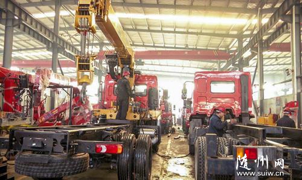 随州网讯  神百汽车公司吊机、平板车、冷藏车等产品去年产销实现了30%以上的增幅,今年该公司力争生产专用汽车5000辆,产值达到5亿元。(本报记者 李文军摄)