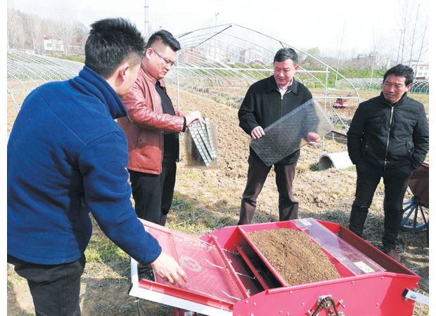 随州网讯 入春以来,随县投入7853台农机闹春耕。图为随县农业局农机监理(推广)站在高城镇与农机经销商及农机服务中心联动,向农民群众提供农业机械选购、使用知识咨询、农机具引进示范和技术推广活动。(特约记者 鲍亚忠 通讯员 张保国摄)