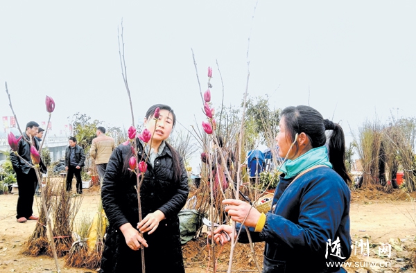 随州网讯 近日,随县厉山镇农民在农贸市场选购树苗。该镇许多农民抓住春季植树造林的大好时机,购买树苗绿化家园。(本报记者 李文军摄)