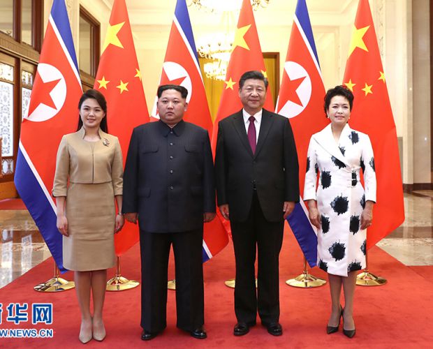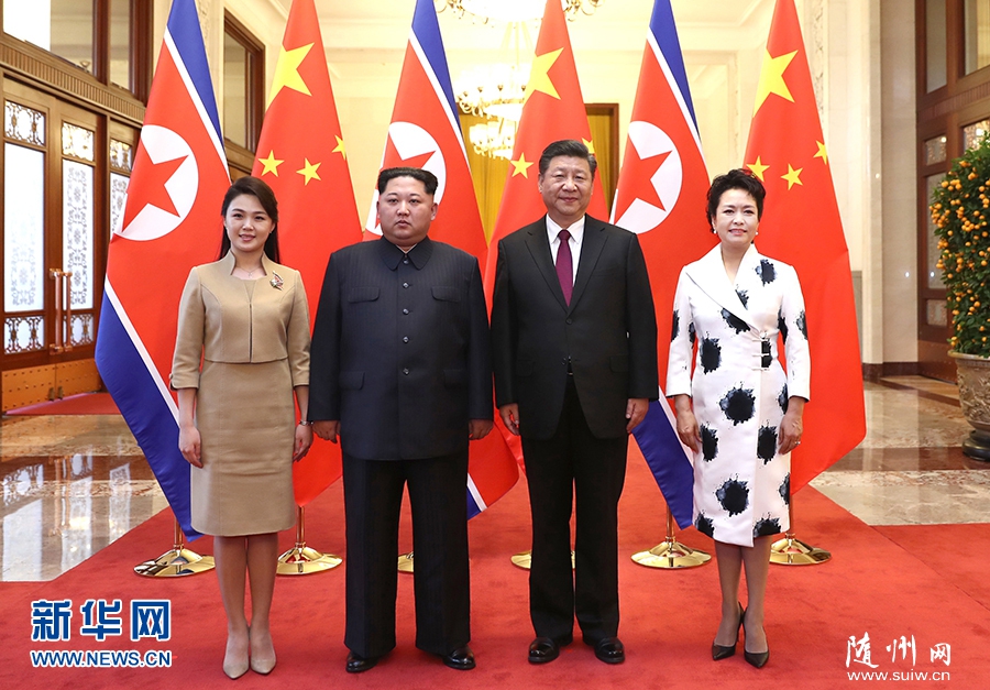 会谈后,习近平和夫人彭丽媛为金正恩和夫人李雪主举行欢迎宴会。习近平在致辞中表示,在这春回大地、万物复苏的美好时节,金正恩同志和李雪主女士对中国进行非正式访问,对双方深化沟通、加强协作、促进合作具有十分重要的意义,将推动两党两国关系在新的历史时期迈上新的台阶,为推动本地区和平、稳定、发展作出重要贡献。刚才,我同金正恩委员长进行了坦诚友好的会谈。我们一致认为,传承发扬中朝传统友谊,符合双方共同利益,是双方共同的战略选择。无论国际地区形势如何风云变幻,我们双方都会牢牢把握世界发展大势和中朝关系大局,加强高层交往,深化战略沟通,扩大交流合作,造福两国人民和各国人民。