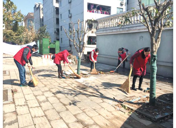 随州网讯 3月21日,曾都区西城办事处双龙寺社区举行了社区环保志愿服务队启动仪式,邀请辖区居民参与到城市环境综合整治专项行动中来。图为志愿者清扫卫生。 (通讯员 吕高峰 余世平 摄)