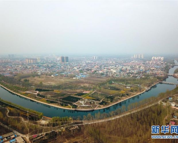 3月30日无人机拍摄的雄县大清河沿岸景观。新华社记者 申宏 摄