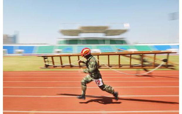 随州网讯 我市消防部队强化日常练兵,以技能比武促进训练,提升队伍整体作战能力,确保随时拉得出、冲得上、打得赢。图为4月17日,消防官兵技能比武的场景。(本报记者 徐 斌摄)