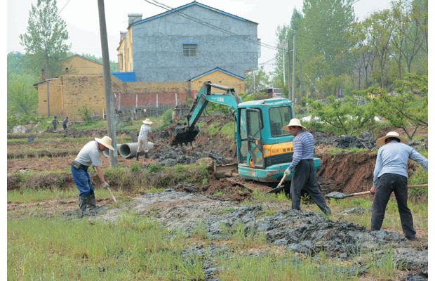随州网讯 时值春耕季节,随县各地农村翻整加固堰塘、铺设农田灌溉水网,推进高标准农田建设,确保广大农民在插秧时水源充足,促进增收。图为该县万和镇高标准农田建设现场。(本报记者 王璟天 通讯员 程鹏摄)