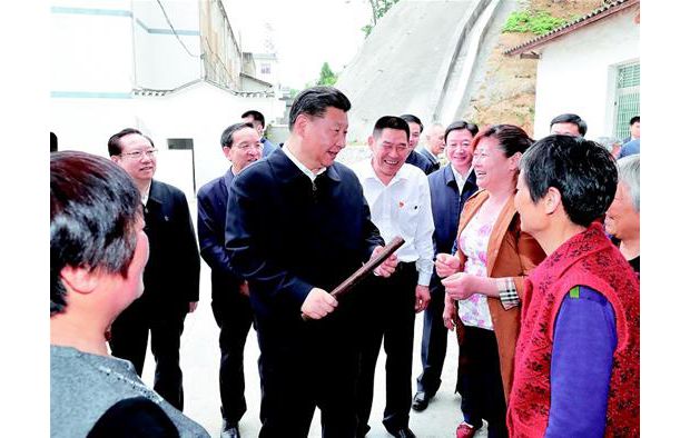 图为:4月24日下午,习近平在宜昌市许家冲村考察时,在便民洗衣池边同村民亲切交谈。 (新华社发)