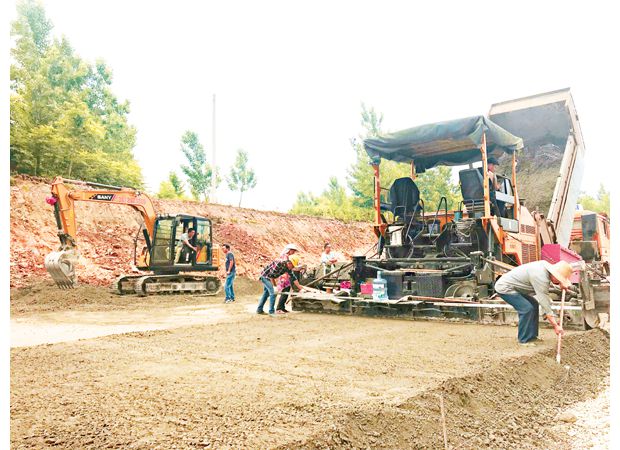 这几天,天气有些热。师傅李恒开着压路机来回碾压水稳层,脸有些泛红。