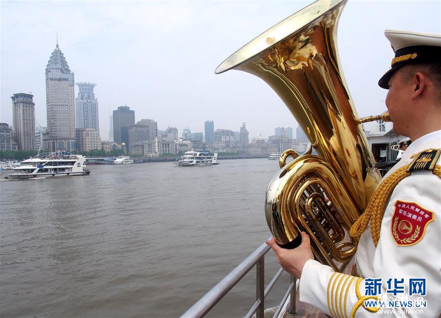 5月1日,中国人民解放军海军军乐团在黄浦江的游轮上演奏乐曲。当日,中外管乐团队在上海黄浦江的游轮上进行行进间演奏。该活动是2018上海之春国际音乐节的特色活动之一,中国人民解放军海军军乐团等来自国内外的多家管乐团队在游轮上先后演奏名曲佳作,吸引沿岸游客驻足观赏。新华社记者 陈飞 摄