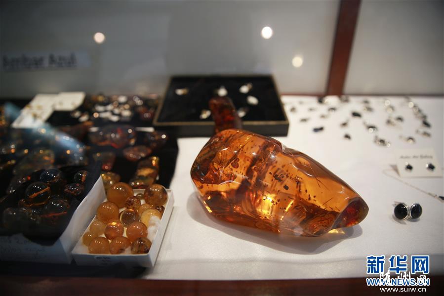 这是53日在多米尼加首都圣多明各的琥珀博物馆拍摄的琥珀和蓝珀。加勒比海岛国多米尼加盛产琥珀,同时也是世界珠宝极品——蓝珀的主产地。蓝珀在阳光下呈现出梦幻的蓝色,是琥珀中最珍贵的品种,被珠宝业界公认为“琥珀之王”。多米尼加琥珀博物馆位于圣多明各市中心的哥伦布广场旁,这里除了展示各式各样的琥珀外,还有关于琥珀历史和琥珀知识的展览。新华社记者淡航摄