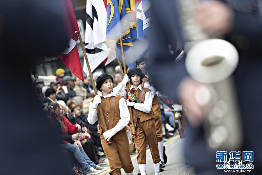 416日,在瑞士苏黎世,人们参加送冬节游行。送冬节又名春季节,是苏黎世传统的送冬迎春民间节庆,庆典高潮是点燃象征冬天的巨大“雪人”,庆祝春天来临。 新华社发(米歇尔·立米纳摄)