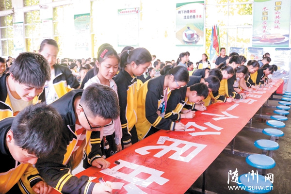 随州网讯 在全市铁路安全宣传月活动中,随州高新区中心学校组织学生开展爱路护路签名活动,旨在全面提升学生们的爱路护路和安全意识。(本报记者 李文军/摄 通讯员 蒋辉/文)