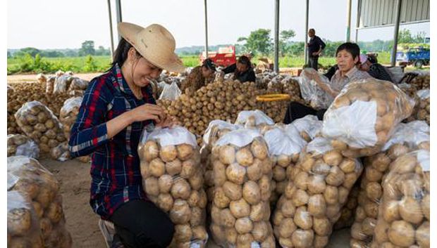 随州网讯 广水市长岭镇李畈蔬菜专业合作社种植的土豆日前喜获丰收。该合作社主要种植萝卜、土豆等蔬菜产品。其固定资产680多万元,年销售收入可达3200多万元。(本报记者 孙洪涛通讯员 戚远斌摄)