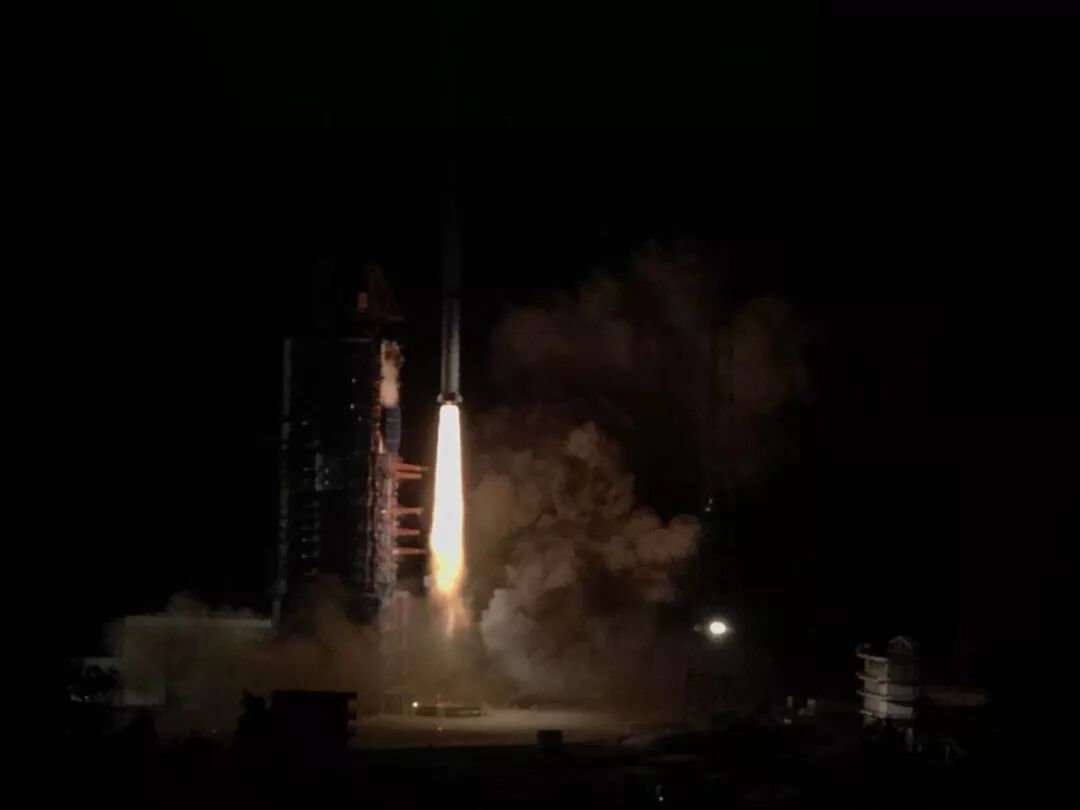 △“鹊桥”号中继星搭乘长征四号丙运载火箭升空瞬间