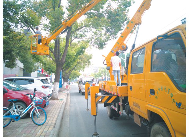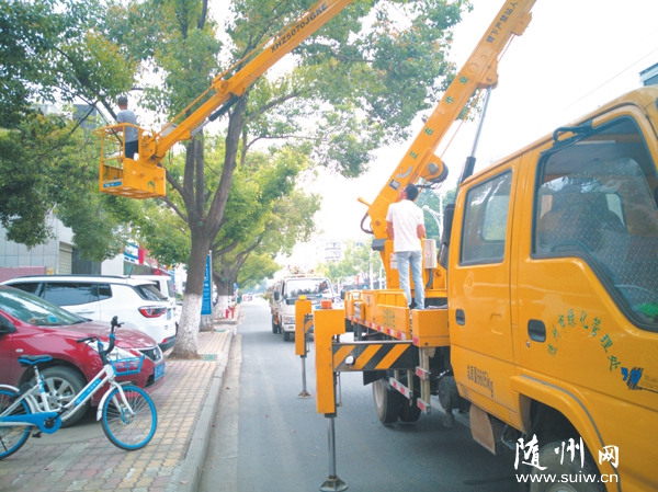 随州网讯 市园林部门修剪行道树残枝败叶,迎接寻根节。(本报记者 王璟天摄)