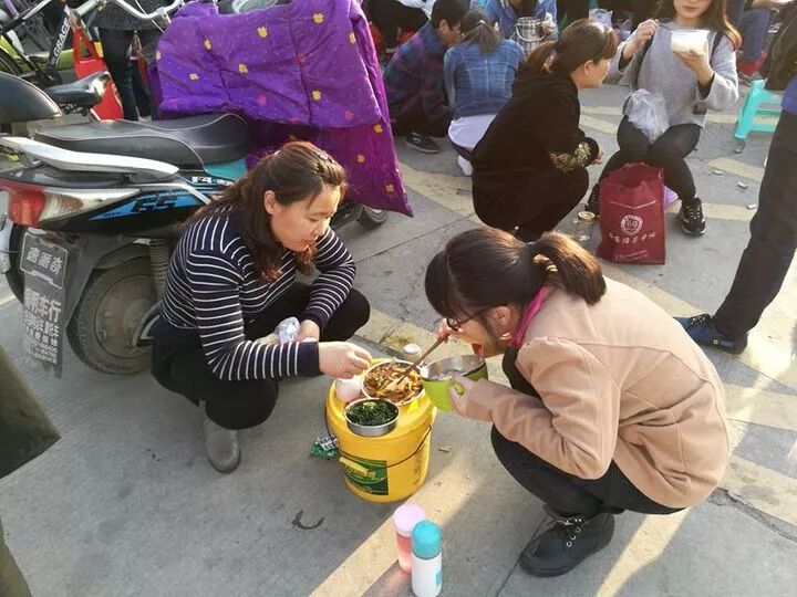 陪读家长给孩子们送饭