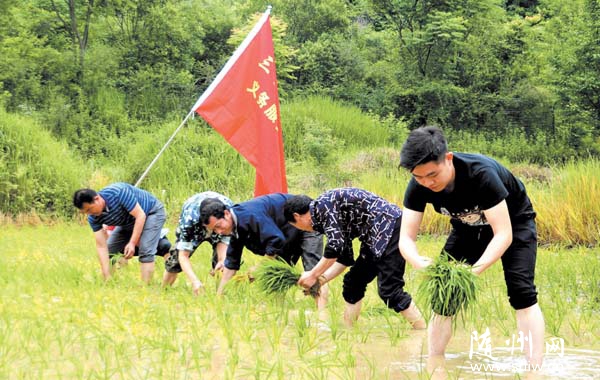 随州网讯 随县厉山镇机关青年党员与狮子口村党员日前为该村贫困户刘春宗义务插秧3.5亩,受到群众称赞。(本报记者 孙洪涛 通讯员 龚承斌摄)