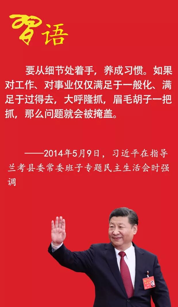 要从细节处着手,养成习惯。如果对工作、对事业仅仅满足于一般化、满足于过得去,大呼隆抓,眉毛胡子一把抓,那么问题就会被掩盖。
