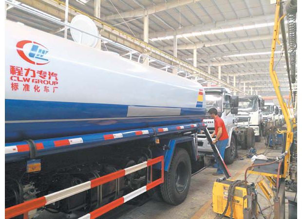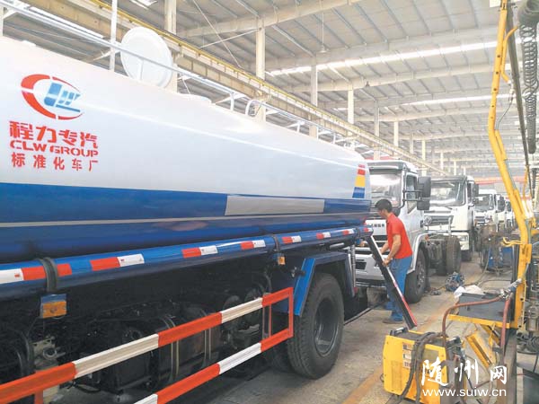 随州网讯 程力专用汽车股份有限公司强化产品营销,提升品牌美誉度,其产品销往全国20多个省(直辖市,自治区),同时出口非洲、南美等多个地区。今年上半年该企业订单饱满,一直保持满负荷生产。(本报记者 王璟天摄)