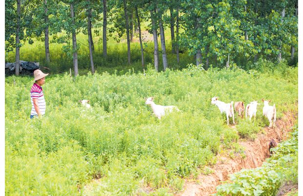 随州网讯 曾都区万店镇塔湾居委会村民利用丰富的山场资源,在山间养殖山羊,促家庭增收。(本报记者 王璟天摄)