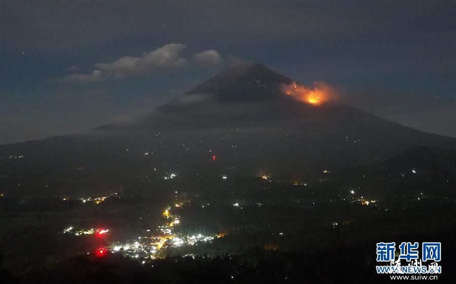 印尼火山和地质灾害减灾中心2日晚发布通告说,阿贡火山当天剧烈喷发,大量岩浆从火山口喷出,岩浆所到之处引发山林燃烧,火山口上空火山灰柱高达2000米。新华社发(西曼云塔 摄)