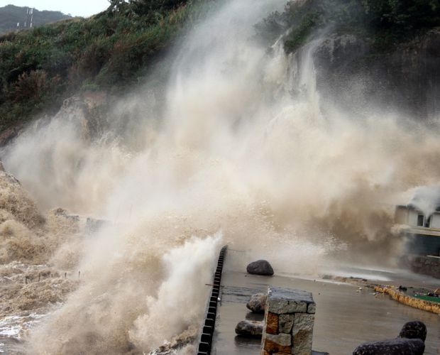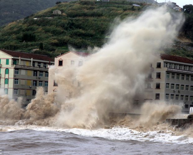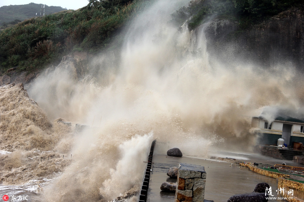 受台风“玛莉亚”影响 浙江温岭海岸掀起十多米高巨浪