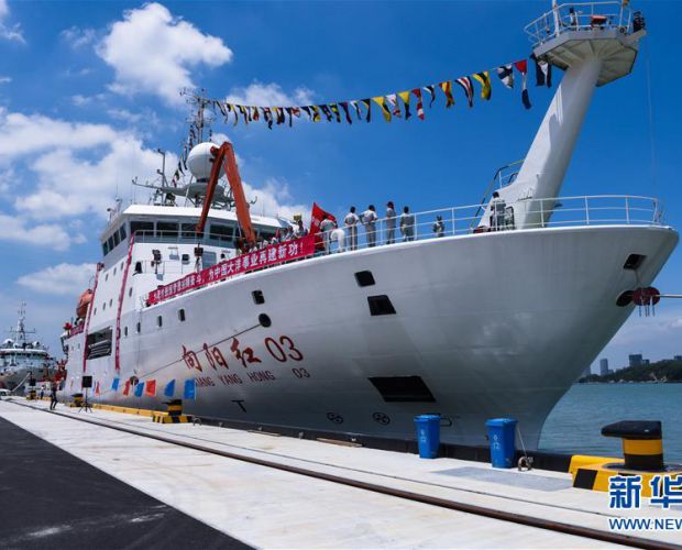 7月14日,“向阳红03”科考船在厦门港准备起航。当日,“向阳红03”科考船从厦门港起航,前往西太平洋、东太平洋等区域执行中国大洋50航次科考任务。据介绍,本航次将执行我国深海战略专项“蛟龙探海”工程的重要任务,共计150天,航程约15000海里。