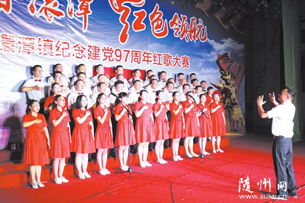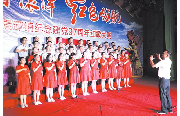 《歌唱祖国》《东方红》《走进新时代》《社会主义好》……一首首脍炙人口的红色经典歌声嘹亮,激人奋进。“七一”前夕,一场主题为“青春澴潭 红色领航”的纪念建党97周年红歌大赛,唱响了澴潭镇广大党员干部群众对祖国和党的无限热爱和真诚祝福。
