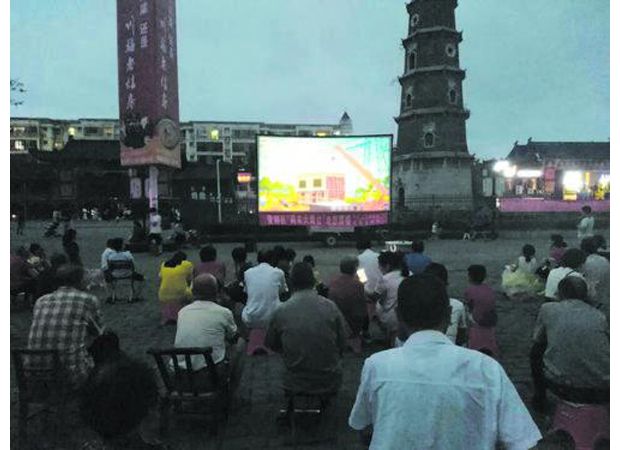 随州网讯 为更好地宣传电力法规,确保我市电网安全,连日来,国网随州供电公司与随州欣农电影公司合作,在全市巡回宣传放映科教片《农村安全用电小故事》。图为电影巡回放映现场。 (通讯员 沈靖坤 王智军摄)