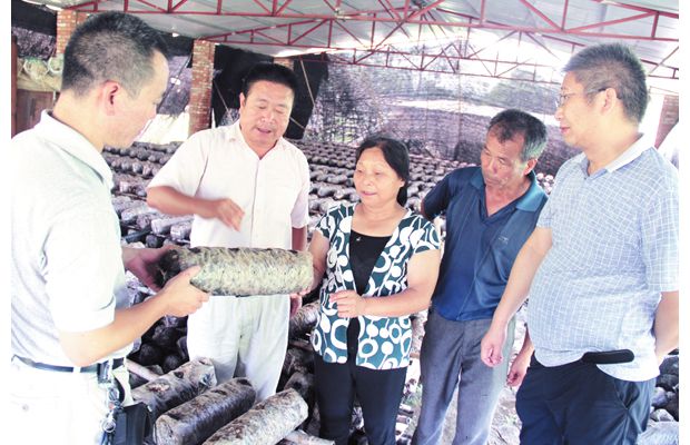 随州网讯 7月20日,曾都区何店镇农技服务中心邀请区微生物管理站、区食用菌协会的专家对该镇菇农进行第三期香菇生产标准化培训。图为专家们为花湾村孙玉英的香菇烂袋会诊并开药方。 (通讯员多思 摄)